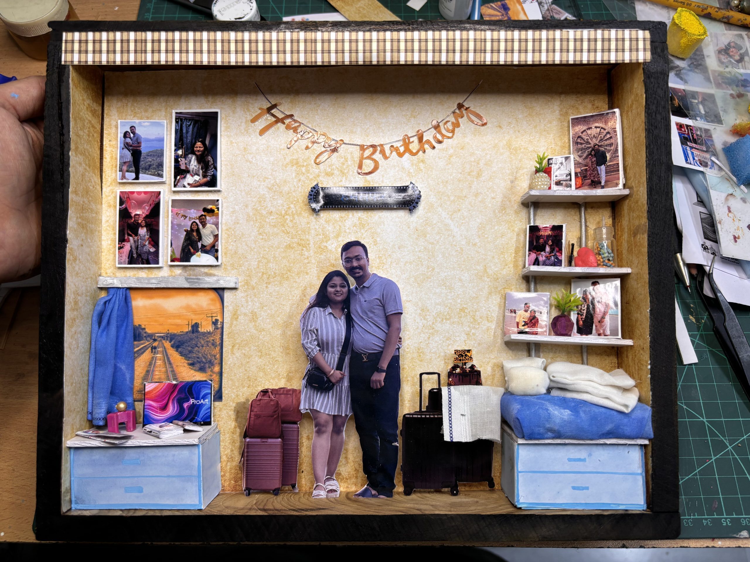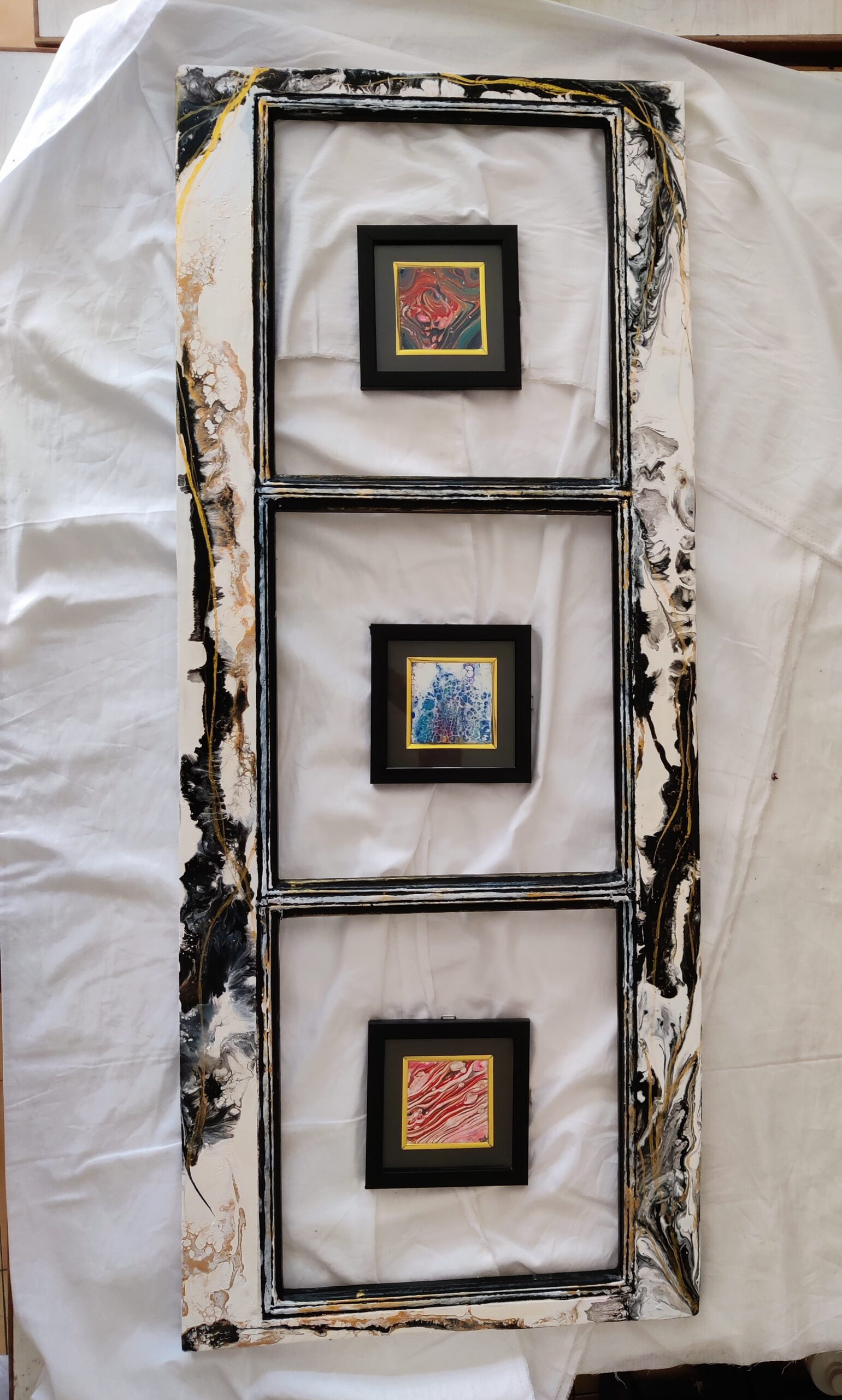 A calm, curated look at recent pieces across 3D frames, miniatures, magnets, glass, acrylic, wall and fluid art—photographed as they left the workbench so the textures and handwork stay center stage.